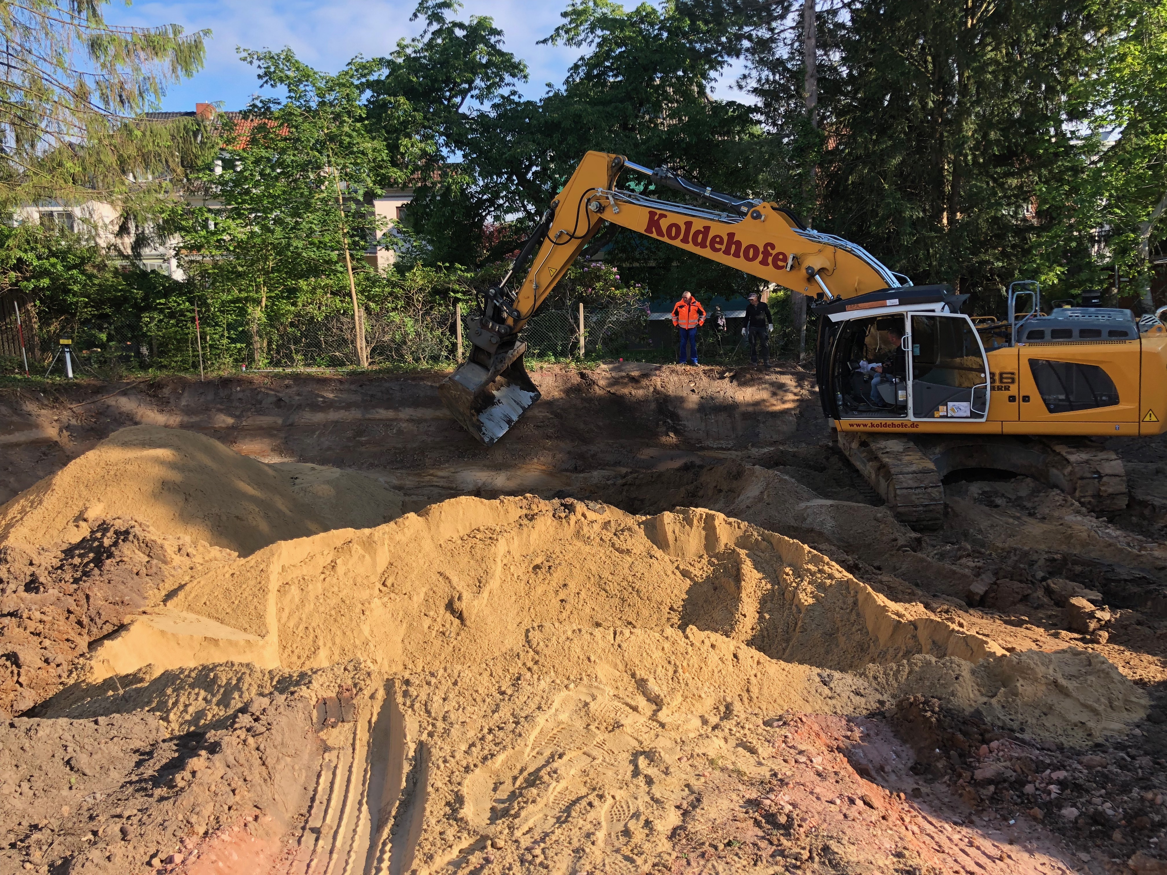 Für unser Projekt Allee 36 starten endlich die Bauarbeiten. Rund 3000 Tonnen Erde müssen bewegt werden, um den beiden Gebäuden mit insgesamt 19 Wohnungen den notwendigen Halt zu geben. Bis Ende 2020 werden die Arbeiten andauern.
