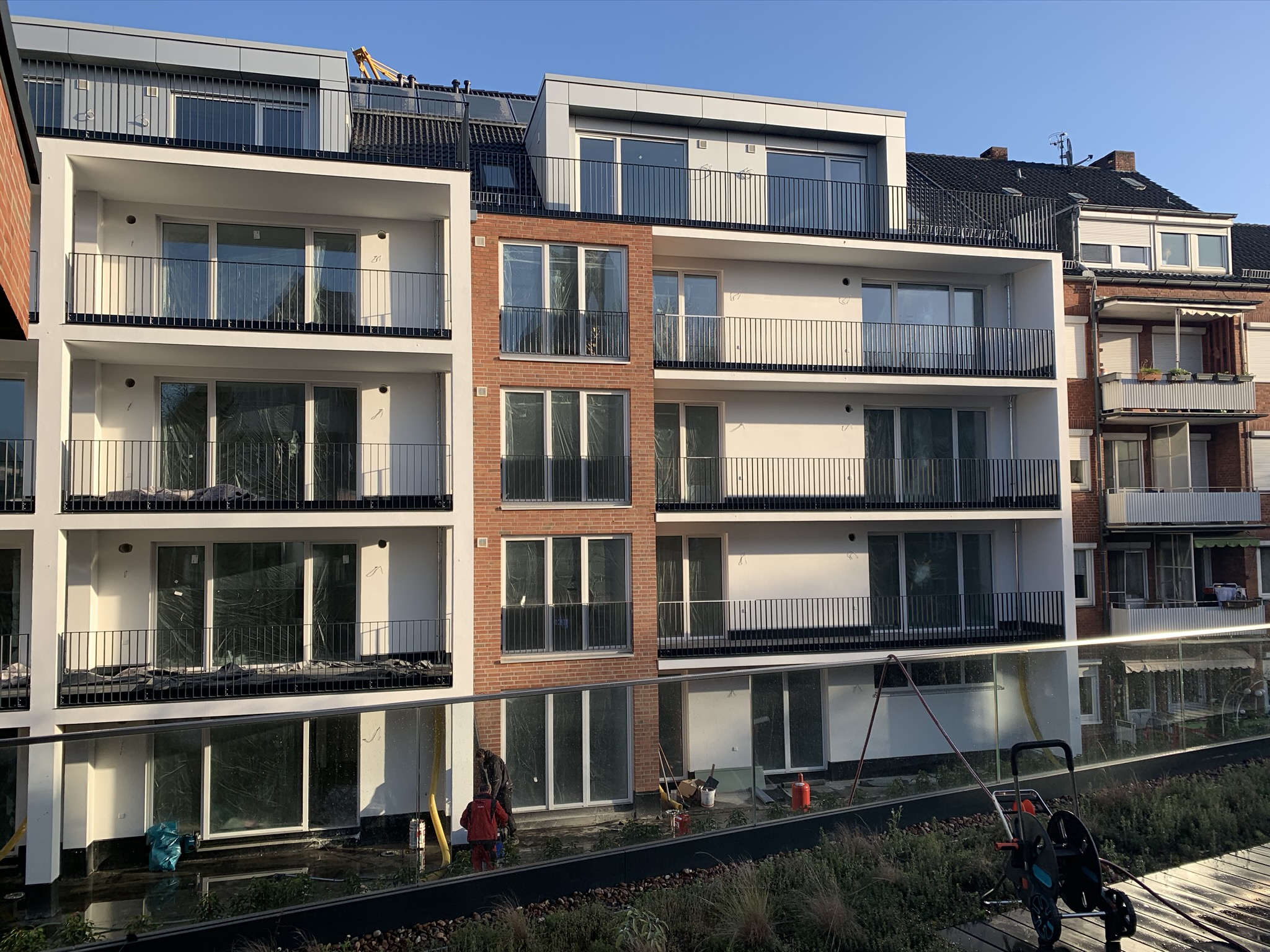 Wenn man die Faulenstraße stadtauswärts läuft und die Kreuzung bei der VHS und Radio Bremen erreicht hat, kann man schon die Gauben sehen. Imposant stehen sie über den Giebeldächern und geben dem Neubau in der Faulenstraße Nummer 108 ein besonderes Äußeres. Bodentiefe Fenster im Dachgeschoss ermöglichen einen Blick in die Umgebung und hinüber in die nahegelegenen Wallanlagen. Die Fertigstellung des Neubaus steht kurz bevor und nahezu alle der 19 Wohnungen und Stellplätze sind bereits verkauft.
