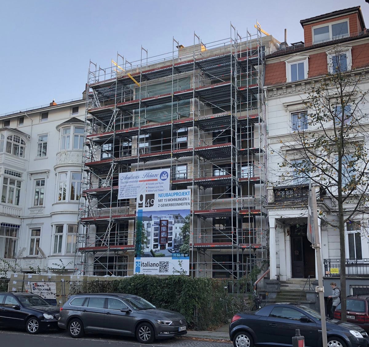 Ausser der Schleifmühle errichten wir bis zum Frühjahr 2019 ein Wohnhaus mit 16 Wohnungen und zwei Gewerbeeinheiten. Der Rohbau ist abgeschlossen. Ab jetzt startet der Innenausbau.