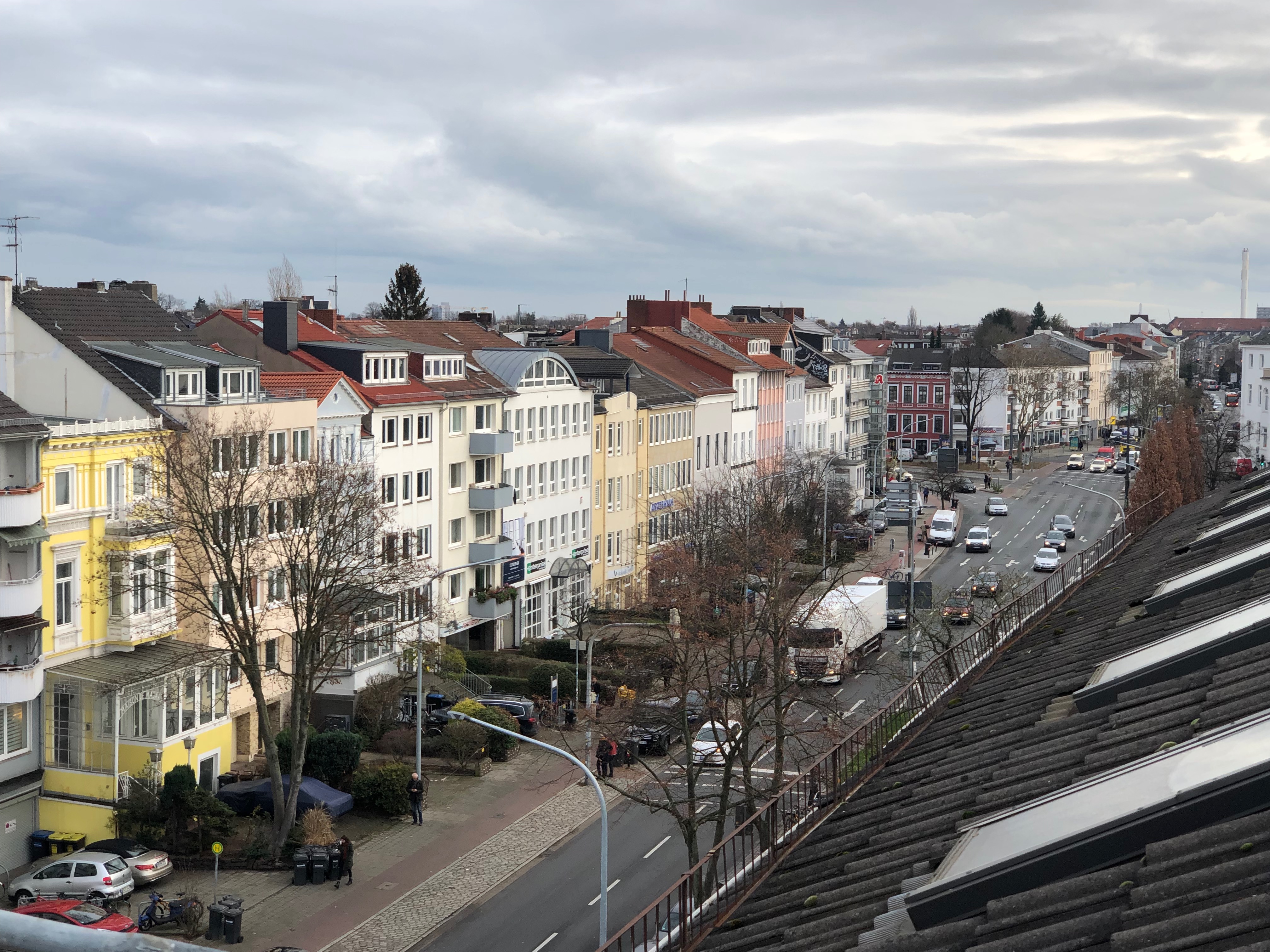 Nach Abschluss der Rohbauarbeiten Außer der Schleifmühle lohnt sich der Gang nach ganz oben. Tolle Aussichten Richtung Schwachhausen, Viertel und Marktplatz lassen den Charme der Staffelgeschosswohnung erahnen.